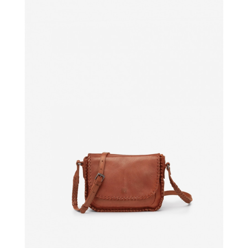Cross bag de piel vacuna lavada y de curtición vegetal. Característico pespunte de la colección en la solapa y contorno del bolso. Bandolera ajustable, cierre con cremallera, bolsillos externos e internos, y forro de algodón.