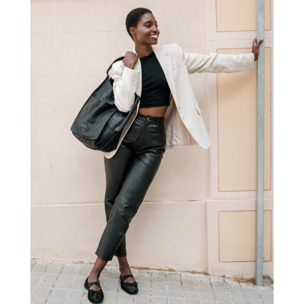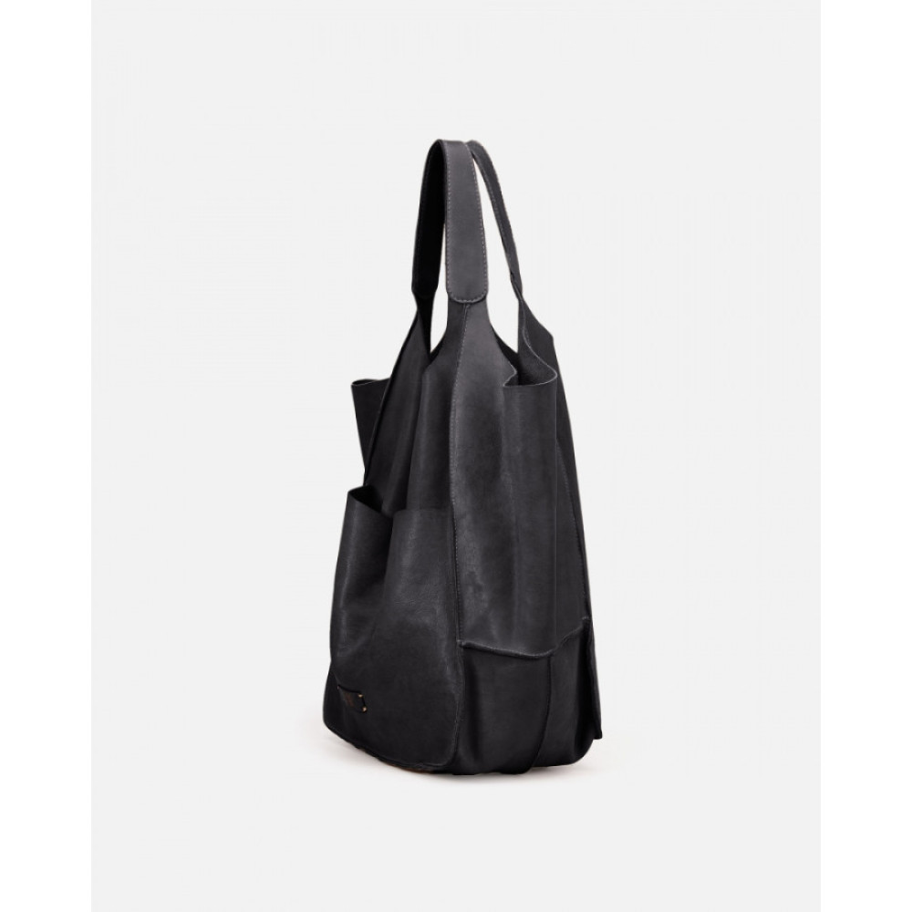 Shopper de piel vacuna lavada, y de curtición vegetal. Cierre con botón.