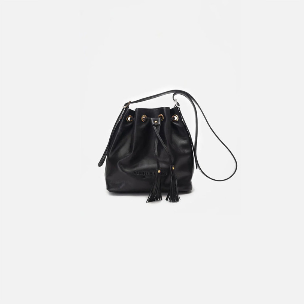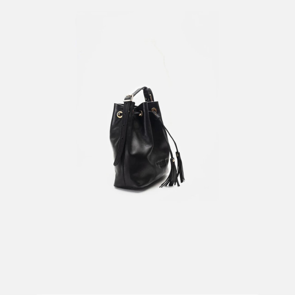 Bolso mediano de piel estilo bombonera con asa ajustable. El Pampa es un bolso ligero y gracias a su asa regulable podrás llevarlo cómodamente a la altura que más te guste. Cierre con cordón con detalle de pompones.